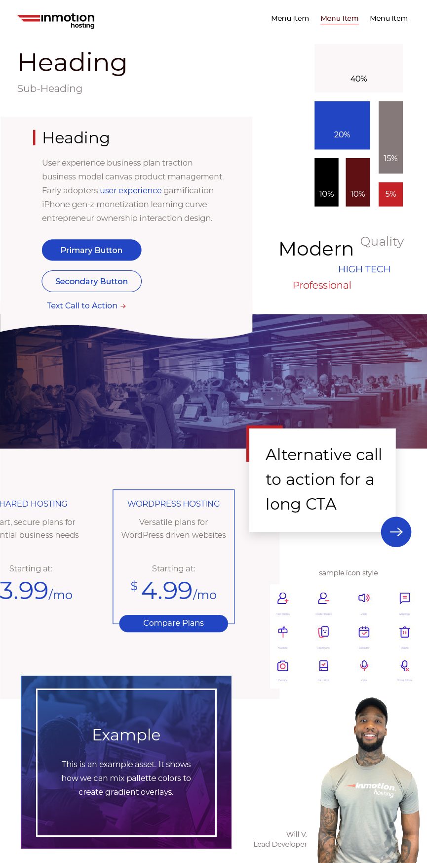 InMotion Hosting is a technology company, but their website is pure eCommerce. Leading the charge, I transformed the brand from the ground up. We created a next-generation mobile-focused eCommerce platform with new user journey mapping, heavy user testing, design iterations, content testing, and customer persona's.